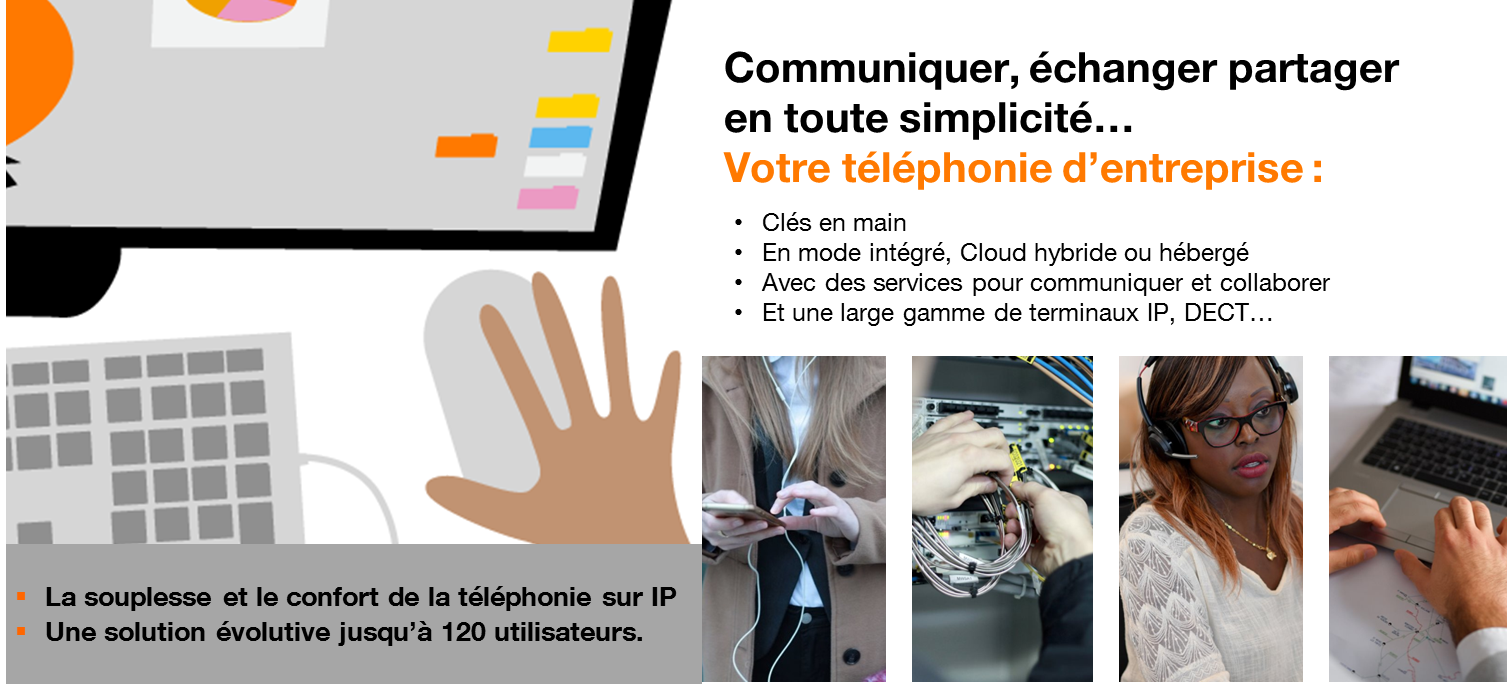 Vous avez un standard téléphonique intégré, Cloud Hybride ou hébergé ? Optez pour une solution 100% intégrée. Nous vous proposons une large gamme de solutions de communications unifiées d'entreprise packagées, clé en main adaptées et optimisées pour les PME. Avec nos offres, votre standard téléphonique IP installé dans vos locaux intègre de base toutes les fonctionnalités d'un ipbx enrichi de solutions collaboratives nécessaires à votre activité.