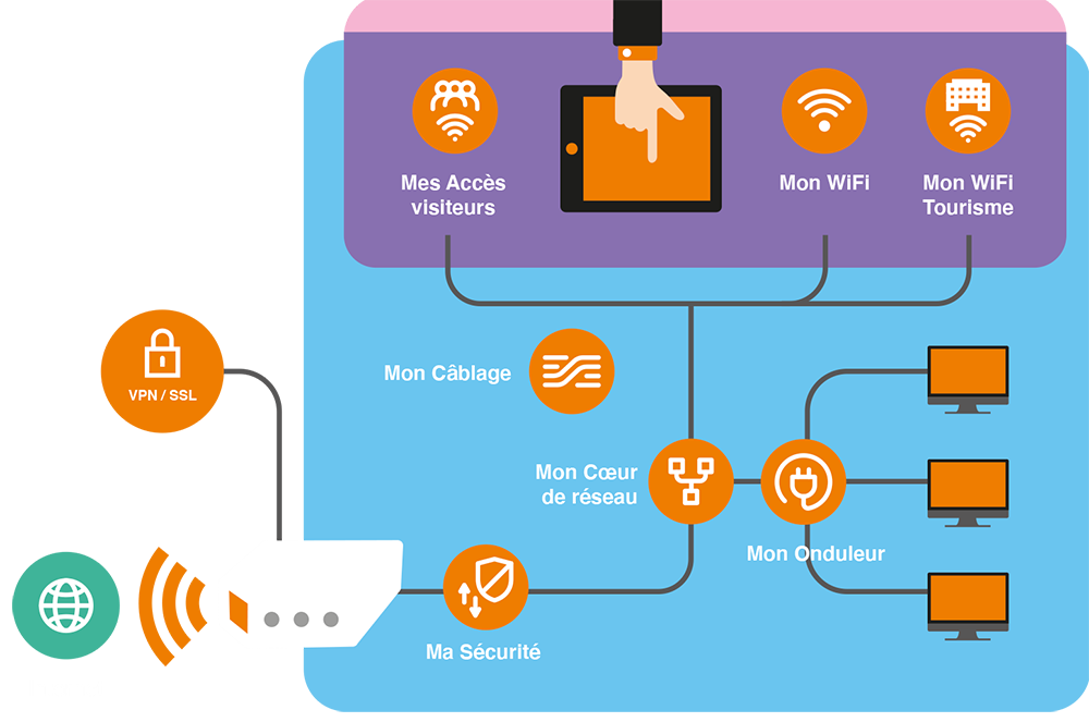 7 modules LAN indépendants clés en main et sécurisés mon réseau local, la solution LAN packagée Orange Business, s’appuie sur des infrastructures sécurisées. Composées de 7 modules simples à déployer, vous constituez votre réseau local à votre rythme en sélectionnant les modules souhaités, sans remettre en cause votre installation existante.